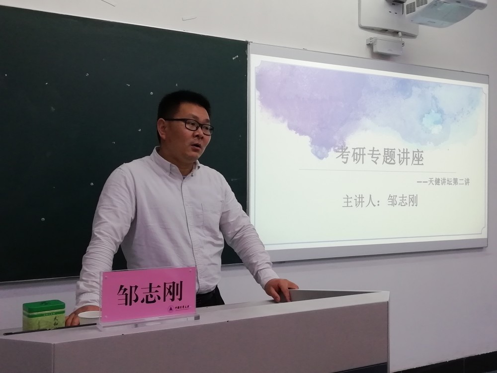 邹志刚分析了近年来研究生报考的形势与现状,讲解了报考流程及考试要求,并结合个人考研经历,分享了考研复习方法与经验。