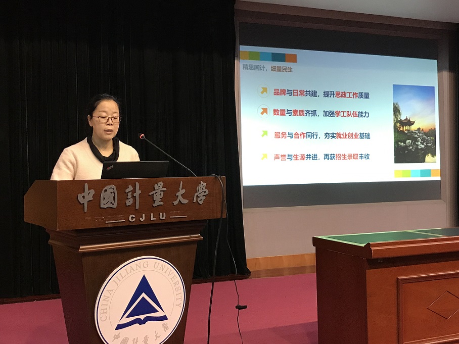 会上,学工部部长赵蓓茁总结了2018年我校学生工作,提出2019年学生工作要围绕中心工作,确保安全稳定;思政融入日常,深化育人品牌;建设队伍文化,营造良好学风;提升就业服务,争取招生稳定,并做了具体布置,同时重点强调了学生资助经费的规范使用。研工部副部长邹志刚从如何开展研究生核心价值观教育、日常工作管理、创新教育、就业创业服务等方面做了具体布置。团委常务副书记李佼佼从“政治引领、建功突破、基础提升、作风建设”等方面布置了2019年共青团工作的重点工作内容。