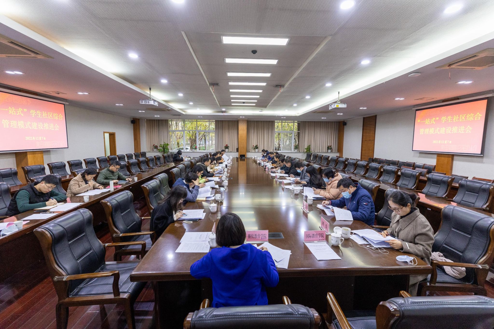 12月7日上午,我校在闻厅一楼会议室召开“一站式”学生社区综合管理模式建设推进会,会议由校党委副书记程刚主持,各相关建设部门负责人、各学院学工书记出席会议。