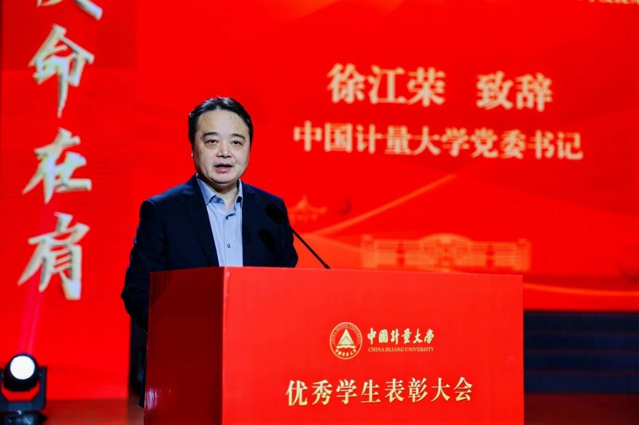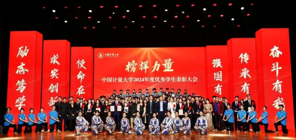 12月30日,榜样力量——中国计量大学2024年度优秀学生表彰大会在学校嘉量大会堂举行。校党委书记徐江荣,党委副书记程刚,副校长王新庆、王乐,党委委员、宣传部部长陈永强出席活动。学校学生工作领导小组成员、相关职能部门主要负责人、各学院主要负责人、学工书记、受表彰的学生代表以及各学院学生代表参加活动。本次活动通过线上线下结合的方式进行,由学校官方视频号、抖音号进行现场直播,同时开通图片直播,总收看量达5.4万人次。