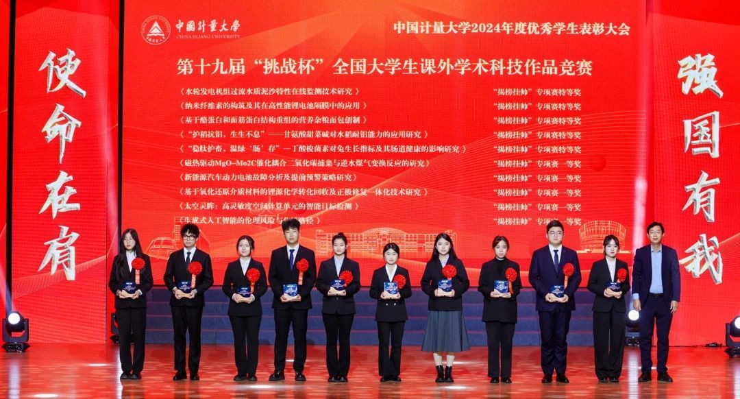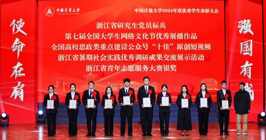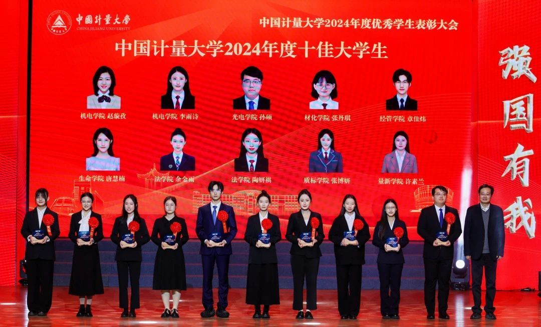 艰难困苦,玉汝于成。在过去的一年里,有一群人,他们不仅在学业上取得了优异的成绩,更在社会的各个领域中展现了出色的能力和卓越的风采。他们是2024年中国计量大学十佳大学生。程刚为获奖者颁奖。
