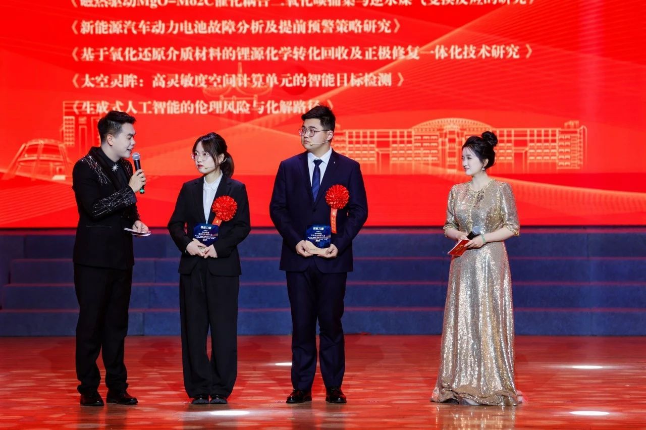 程刚为第十四届挑战杯大学生创业计划竞赛获奖团队代表颁奖。他们在课外科技的赛道上,勇于挑战、敢于突破,取得了丰硕成果。他们以赛促学、以赛赋能,用智慧和汗水书写了一页页辉煌篇章。