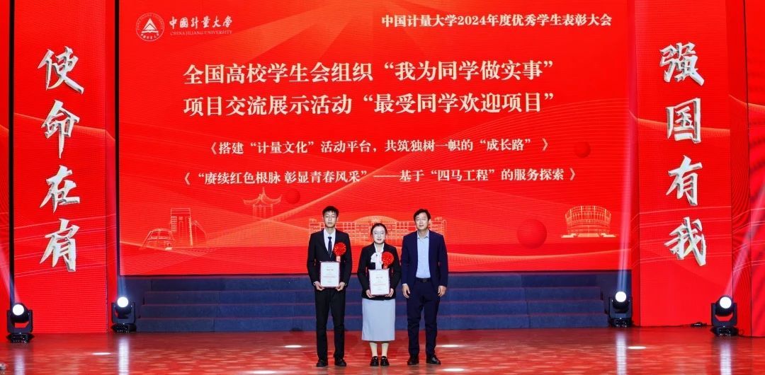 在量大校园里,学生会组织的成员们一直用实际行动践行服务同学的承诺,用创新的思维和实际行动解决同学们的实际问题。王新庆为全国高校学生会组织“我为同学做实事”项目交流展示活动“最受同学欢迎项目”获奖学生组织代表颁奖。“我们坚持从学校自身寻特色、从历史溯源头,以传承计量文化为出发点,找准广大同学思想和实际需求的汇合点,打造多样化文化舞台,让量大学子成为校园文化的建设者和受益者。”学生会成员李昕瑜向大家分享了如何搭建计量文化活动平台。经过多年的实践,学校逐渐构建起计量文化活动矩阵,形成“月月有活动,全年都精彩”的校园文化菜单,每年辐射超10万人次,获评全国大学生毕业主题活动优秀作品、省高校原创文化推广行动作品等多项荣誉。