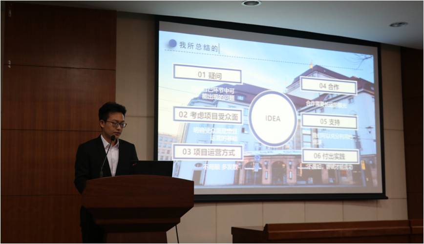 会上,来自本次训练营的5位学员代表团队分别围绕“学习内容与文化感知”、“创业训练营学习体会”、“中德创业差异感悟”等主题做了交流分享。学员章若愚在分享中说到“在德国的学习让我更加清楚的认识到,无论对工作还是学习,要做到全情投入。要想有所成就,必须有足够的热爱,才会让你更加投入。”谈到对文化的认识上,学员朱航这样说“文化是一个民族智慧的结晶,作为一名当代大学生更要尊重文化,做中国传统文化的传承者,希望学弟学妹们去挖掘德国文化更深的魅力。”学员张宇梁通过问题的思考与内在行动力的转化关系,结合自己所学所见,提出了6点思考与大家共勉。学员先大力和陆虹光结合自身情况,更清晰的规划了生涯行动路径,希望掌握更多知识,为国家发展贡献力量。