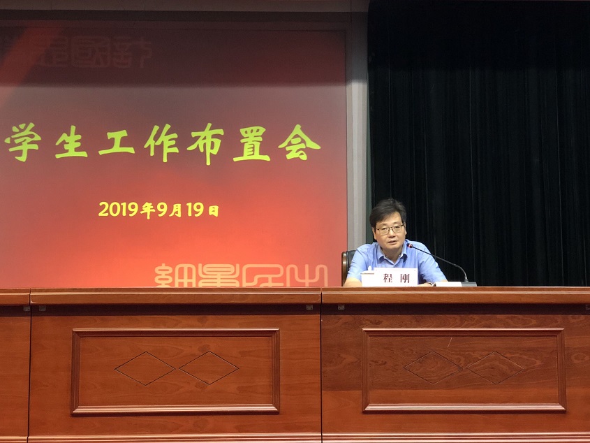 9月19日上午,我校在闻厅二楼报告厅召开2019年下半年学生工作布置会。会议由校党委副书记程刚主持。各学院学生工作书记、全体辅导员,学工部(学生处、招生就业处)、团委全体人员,研工部(研究生院)从事思想政治教育工作人员参加会议。