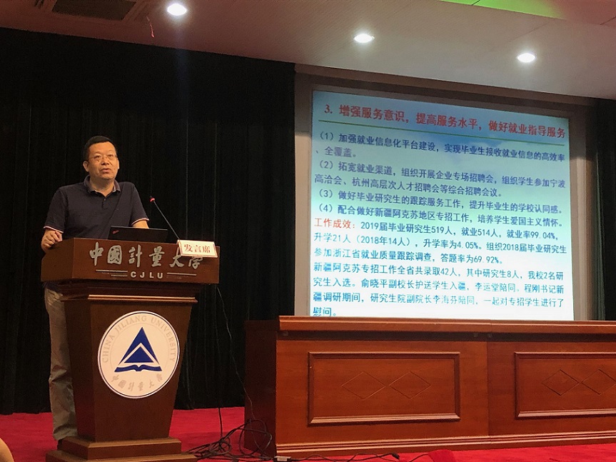 会上,学工部部长赵蓓茁总结了2019年上半年学工部主要工作,重点介绍了上半年学工部在学生思想政治教育、招生工作、就业创业、资助育人、队伍建设等方面取得的成绩;针对下半年安全稳定、辅导员队伍建设、资助育人、主题教育、心理健康、招生、就业、“最多跑一次”信息化建设等工作做了进一步布置。研工部部长张勇围绕修订文件、“最多跑一次”改革、招生宣传动员、就业指导服务、实践创新能力培养、奖助体系完善、学风建设和安全稳定工作等方面做了总结和布置。团委书记陈子良从团学构建的价值枢纽、体系枢纽、组织枢纽、服务枢纽、育人枢纽等方面就上半年工作进行了总结,并从基层建设、科技创新、社会实践、志愿服务、校园文化等方面布置了下半年工作。最后,学工部副部长黄燕就近期新修订的文件做了宣贯。